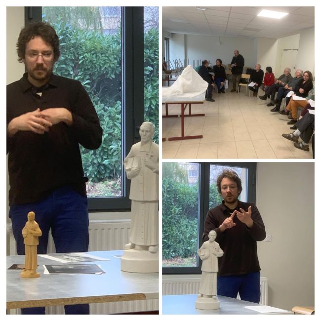 – Le Sculpteur, François RAMET, qui vient de réaliser une magnifique statue de notre fondateur, nous l’a présentée en expliquant sa démarche. Nous y avons découvert un Antoine Chevrier qui marche en avant vers les autres, avec toute la force de son intériorité, poussé qu’il était par le vent de l’Esprit afin de venir en aide aux pauvres en leur proposant de suivre Jésus-Christ.