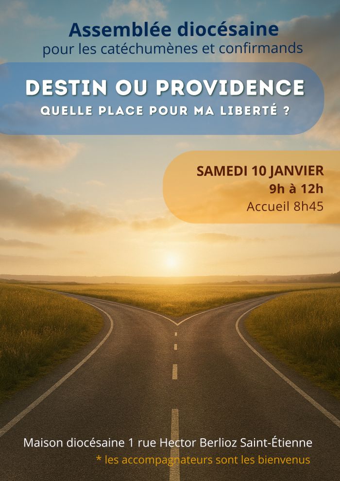 Environ 130 catéchumènes, confirmands et accompagnateurs du diocèse de Saint-Étienne ont vécu ce samedi matin 10 janvier un temps de récollection riche en joie et en profondeur. Louange, enseignements, partages et prière ont rythmé ce temps fort, autour du thème : « Destin ou Providence ? Quelle place pour ma liberté ? »