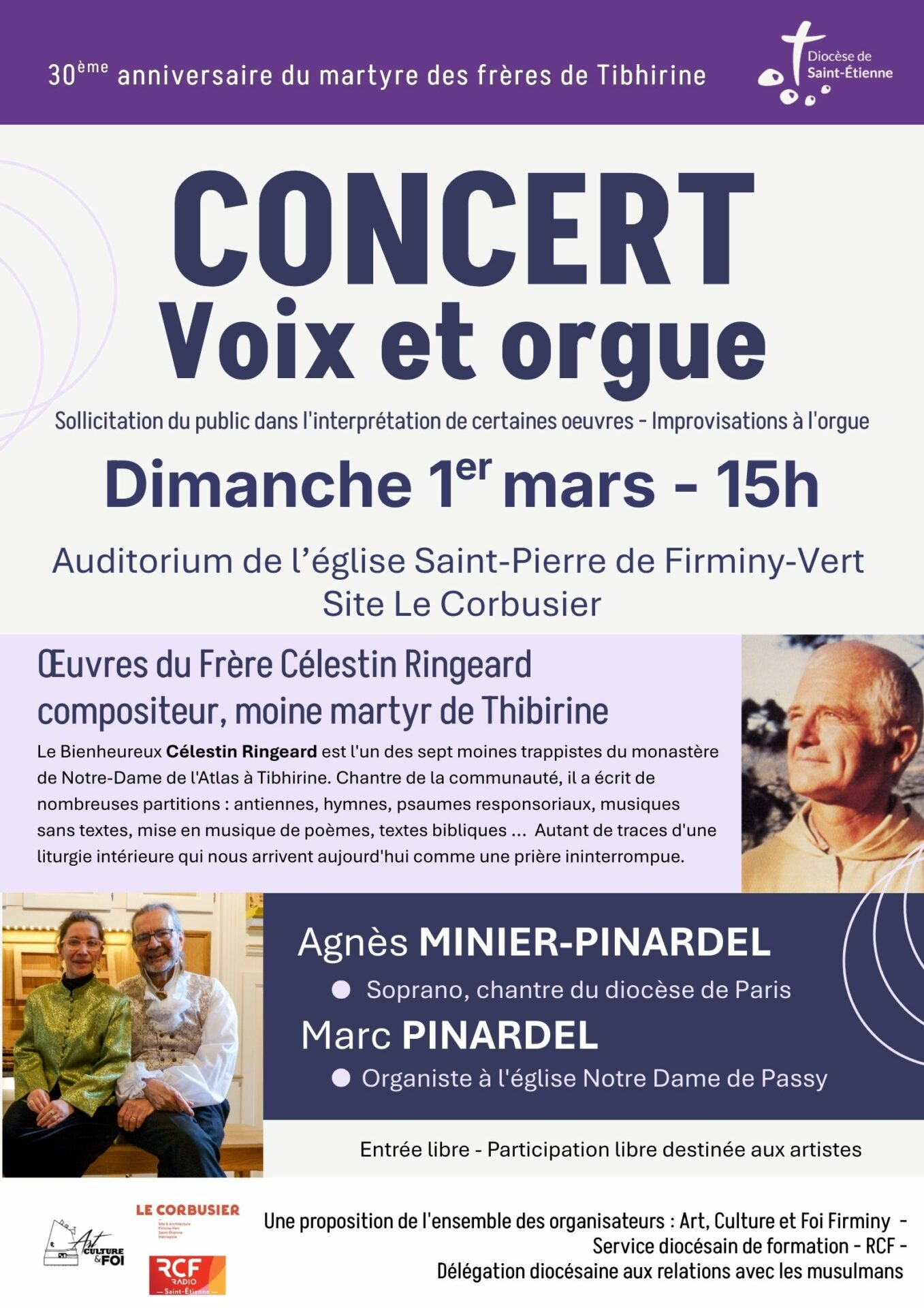Du 1er mars au 12 avril 2026, dans le cadre de la célébration du 30 ème anniversaire du martyre des frères de Tibhirine, Art, Culture et Foi Firminy, le service diocésain de formation , RCF -Saint-Étienne, et la délégation diocésaine aux relations avec les musulmans proposent un programme riche et varié pour honorer la mémoire des moines.