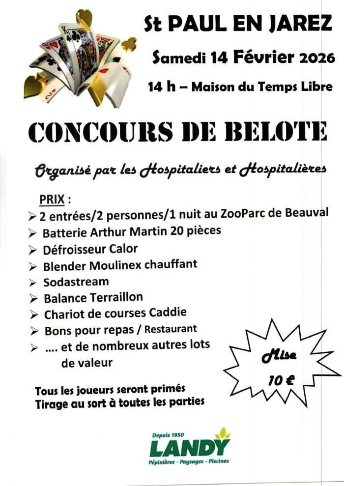 Concours de belote au profit de l’Hospitalité