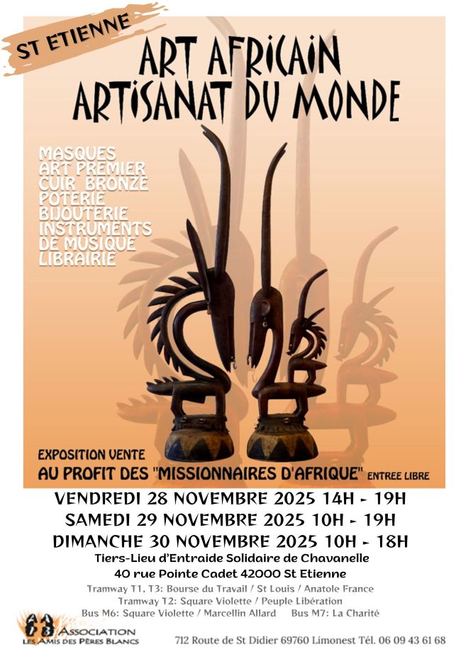 Exposition vente d’art africain artisanat du monde au profit des Pères blancs d’Afrique.