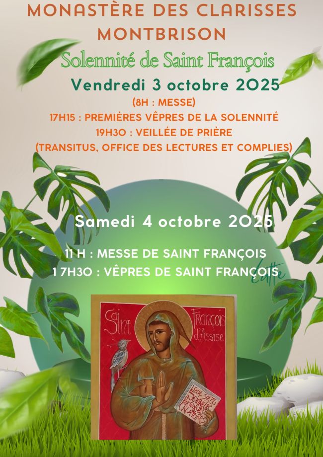 La communauté des Clarisses de Montbrison vous invite à fêter saint François d’Assise
