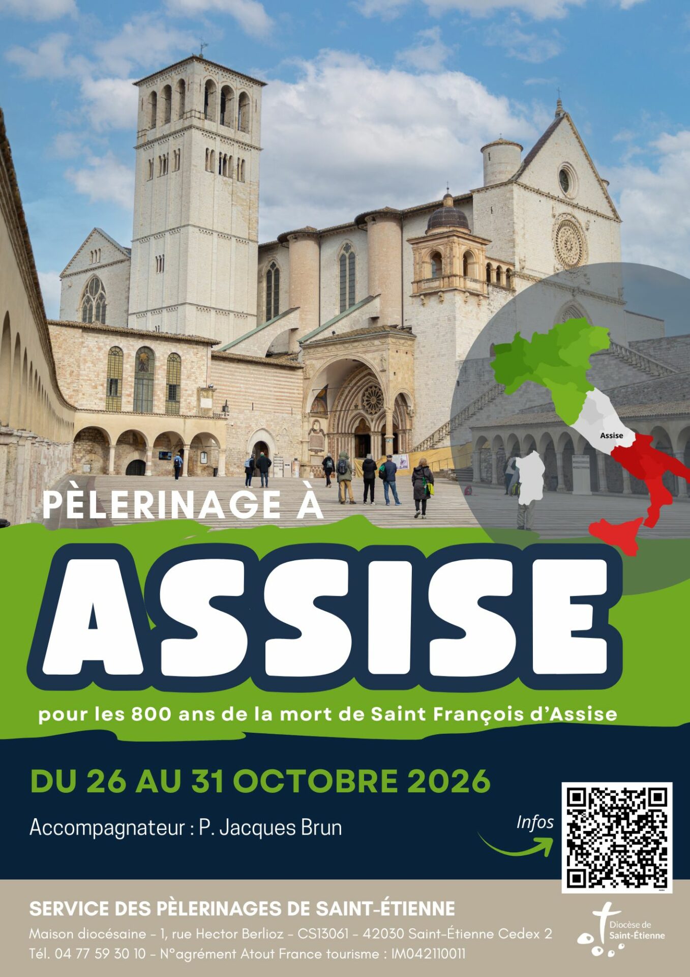 À l’occasion des 800 ans de la mort de St François d’Assise, le Service des pèlerinages de Saint-Etienne organise un pèlerinage à Assise du lundi 26 octobre 2026 au matin au samedi 31 octobre 2026 au soir.