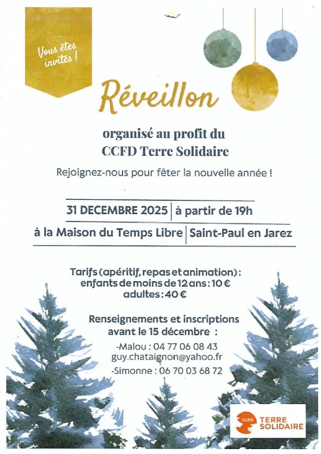 Réveillon du 31 décembre au profit du CCFD Terre Solidaire