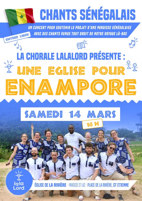 Samedi 14 mars venez découvrir les chants sénégalais interprétés par la chorale Lalalord et soutenir le projet de construction d’une église à Enampore