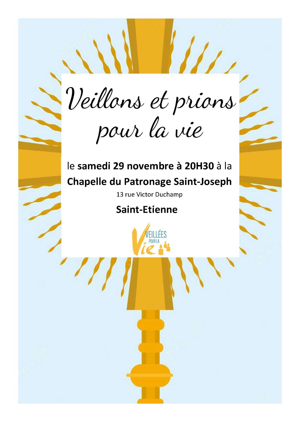 Le patronage Saint-Joseph organise le samedi 29 novembre à 20H30 une Veillée pour la Vie dans la chapelle de l’Immaculée Conception – 13 rue Victor Duchamp à Saint-Etienne.