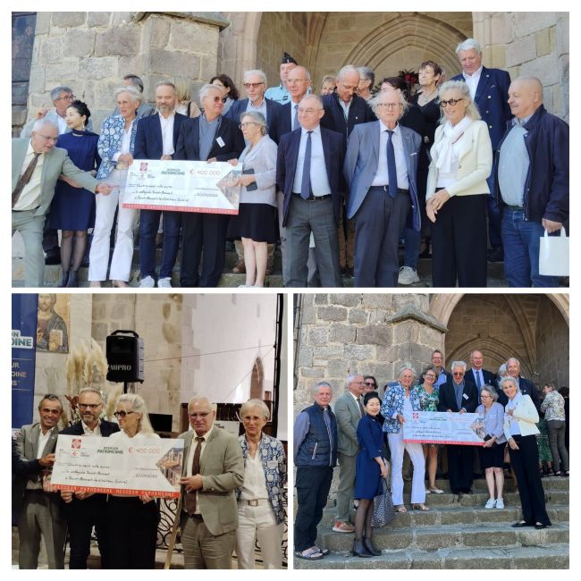Samedi 20 septembre, Madame Marie-Sophie Frignet, déléguée départementale pour la Fondation du Patrimoine a remis un chèque de 400 000 € à la municipalité de Saint-Bonnet-le-Château. Cette aide financière va permettre de lancer les travaux de rénovation de la collégiale. Cela ne représente qu’une toute petite partie du financement nécessaire (il faudrait 10 millions d’euros pour tout rénover). Cette dotation servira à traiter l’urgence, c’est-à -dire la réfection de la toiture.