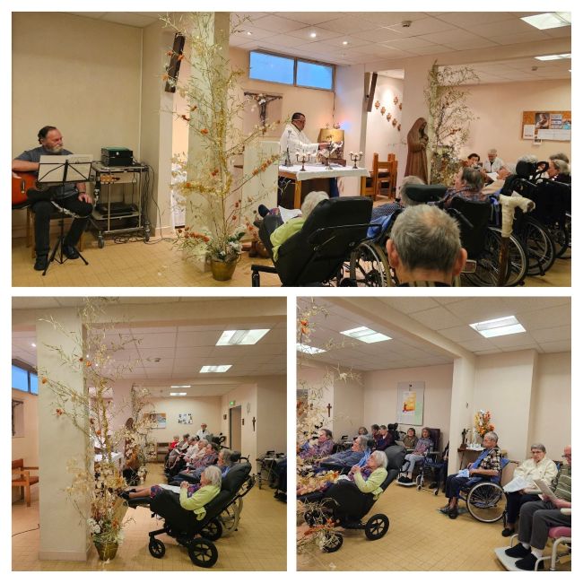 Nos frères et sÅ“urs ainés de l’EHPAD de Feurs et les personnes actuellement hospitalisées pouvant se joindre à eux, ont vécu l’eucharistie jeudi 18 décembre dans la chapelle avec une célébration tournée vers le mystère de la Nativité. L’approche de la fête nous a rappelé que Jésus, le Verbe fait chair, est venu pour tous. Sa venue est Bonne Nouvelle même dans nos situations de fragilité, d’isolement.