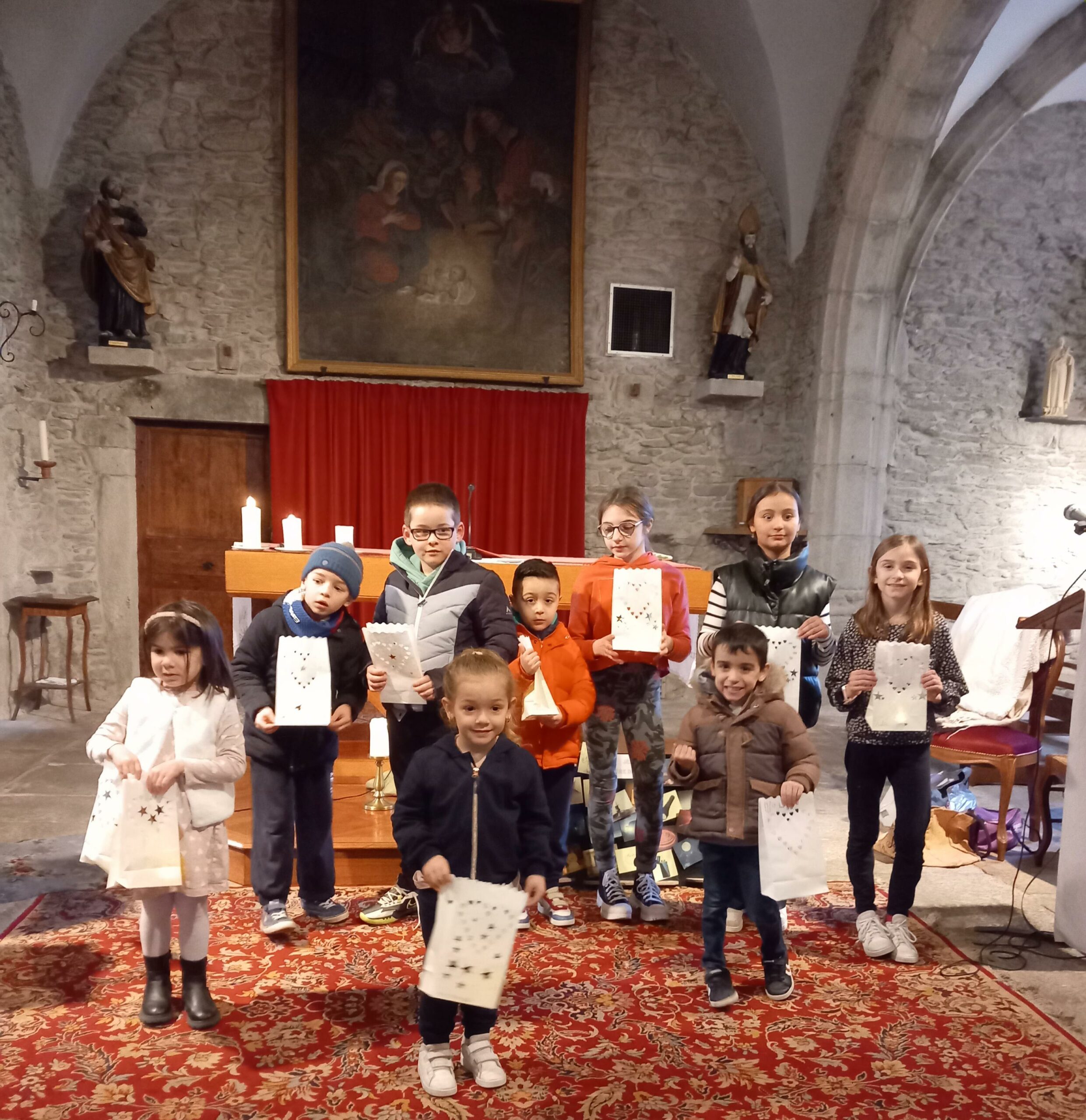 Dans le calme et le respect du lieu, les enfants ont réfléchi et se sont exprimés autour de l’importance de la lumière…ainsi nous avons ensemble, cheminé sur ce qui éclaire notre quotidien en terme matériel…puis les personnes que nous appelons « les petites lumières ». Des gens qui nous consolent, nous écoutent, nous guident, nous aiment et nous font du bien.